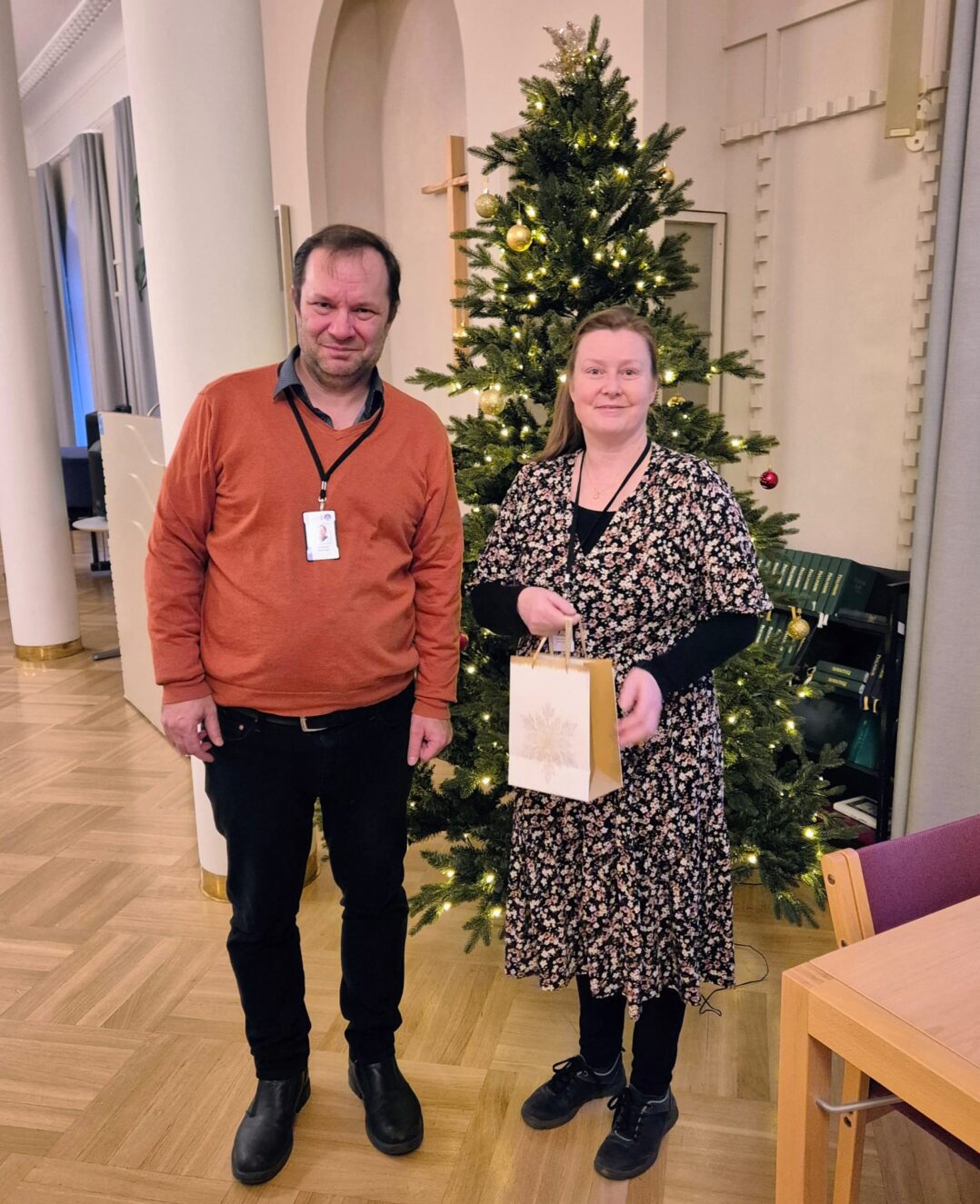 Ruokalahjakorttien luovutus Porvoon seurakunnan diakonialle sekä Itä-Uudenmaan hyvinvointialueen lapset, nuoret ja perheet yksikön neuvoloille ja kouluterveyden oppilashuollolle.