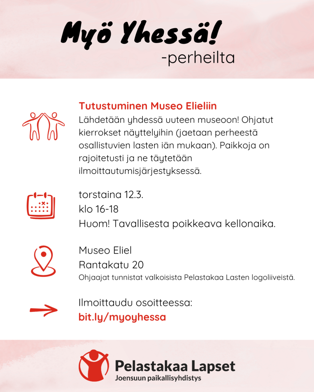 Lähdetään yhdessä uuteen museoon! Ohjatut kierrokset näyttelyihin (jaetaan perheestä osallistuvien lasten iän mukaan). Paikkoja on rajoitetusti ja ne täytetään ilmoittautumisjärjestyksessä.