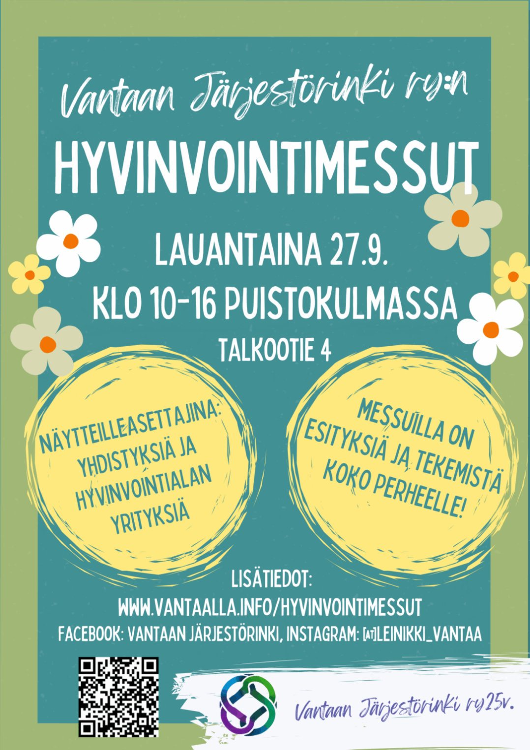 The East Vantaa Wellbeing Fair will be held in Puistokulma, Hiekkaharju (Talkootie 4, 01350 Vantaa) on 27 Sept from 10 AM to 4 PM. The fair will feature exhibitors ranging from associations and political parties to companies in the wellbeing sector. In addition, there will be a program and activities for the whole family!